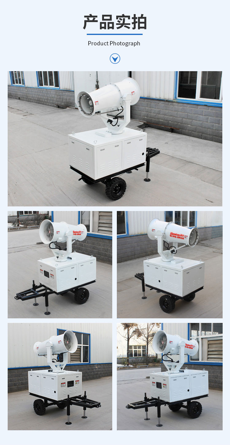產品特點:30米遙控全自動霧炮機射程遠、機動性能好、使用便捷,支持遙控和人工控制操作。