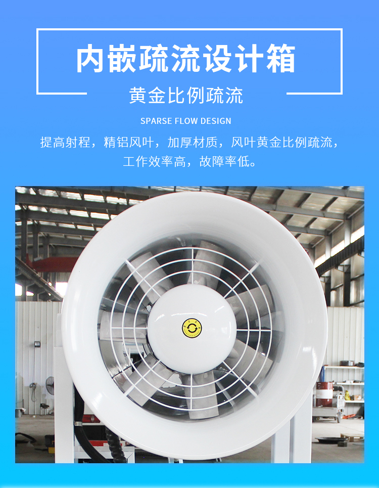 產(chǎn)品特點(diǎn):化工廠降塵霧炮機(jī)采用內(nèi)嵌疏流設(shè)計(jì)箱,可提高射程,精鋁風(fēng)葉,加厚材質(zhì),風(fēng)葉黃金比例疏流,工作效率高,故障率低。