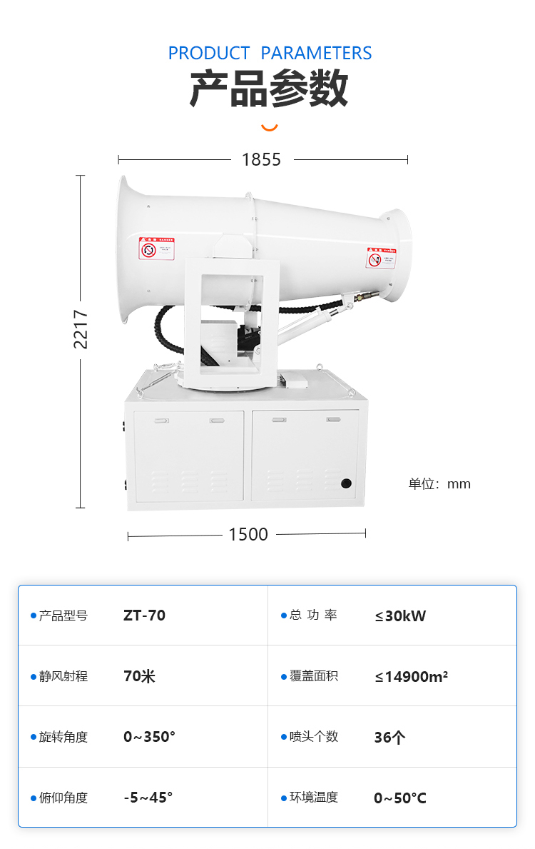 主要用途:用于煤礦場地、冶金鋼鐵企業(yè)、采礦區(qū)域、煤化工企業(yè)、水泥廠、火力發(fā)電廠、建筑工地、物料和礦產(chǎn)品露天堆放廠、混凝土處理廠、垃圾堆放場、垃圾焚燒廠、沙廠、干式物料倉庫、露天爆破、重度粉塵區(qū)域。