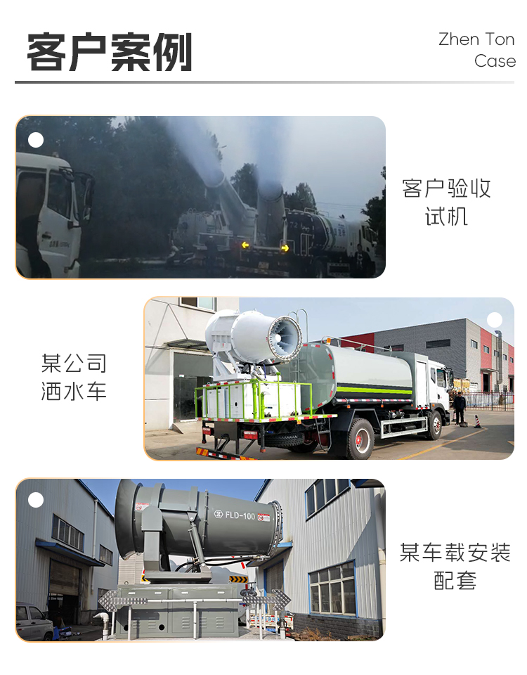 主要用途:適用于城市道路降塵、建筑工地、煤場、工業除塵、農業和園林綠化等粉塵大場所。