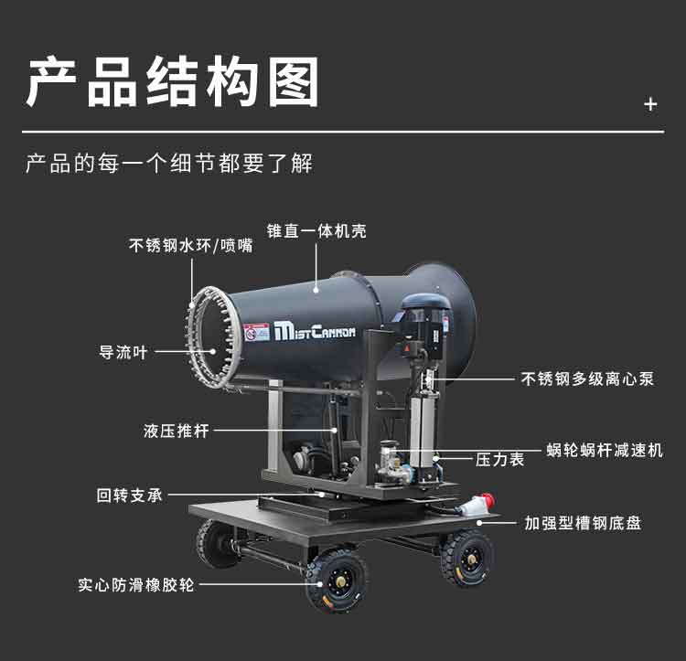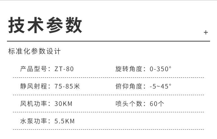產品特點:這款設備是用于消防滅火上的設備,在設計上采用全自動升降裝置,升降平穩,載重能力強。多功能適用場景,不僅可以用于消防滅火,還能用于大型工業場景,如:石料場降塵,礦山降塵,港口碼頭。