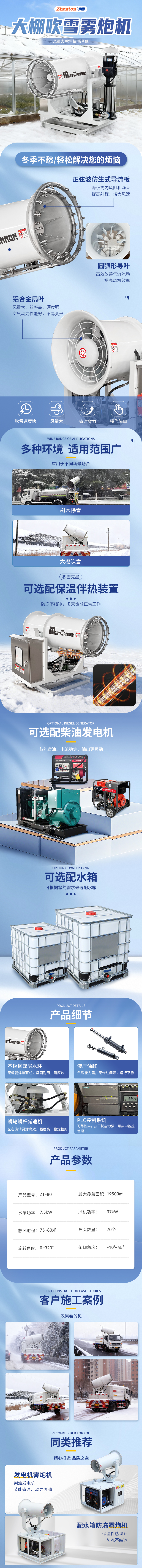 主要用途:森林樹木除雪、大棚吹雪以及煤場、料場、礦山、砂石廠、工地施工等環(huán)境的降塵工作。